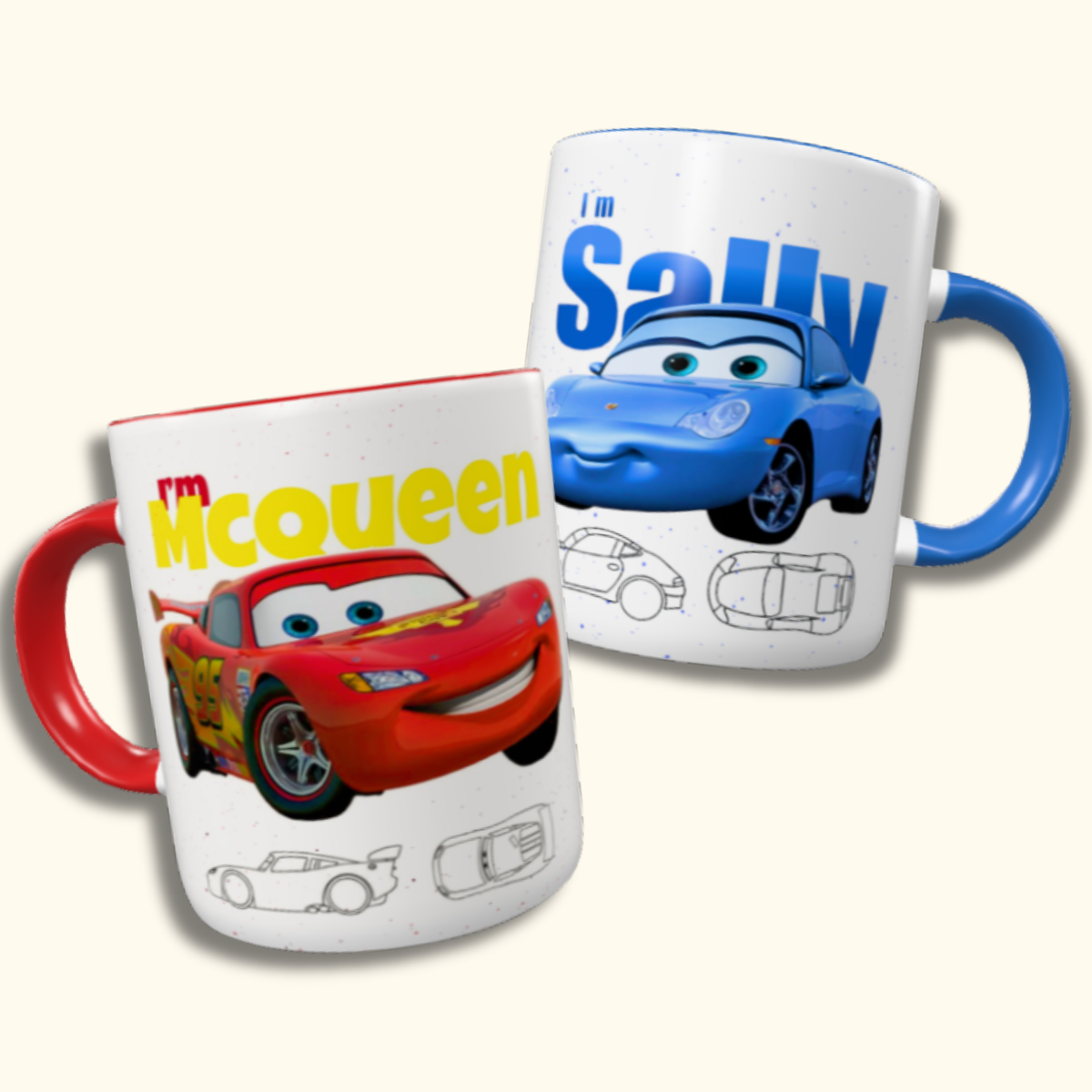 Kit de 2 Canecas Personalizadas - McQueen & Sally: Velocidade, Romance e Muito Brilho ✨☕